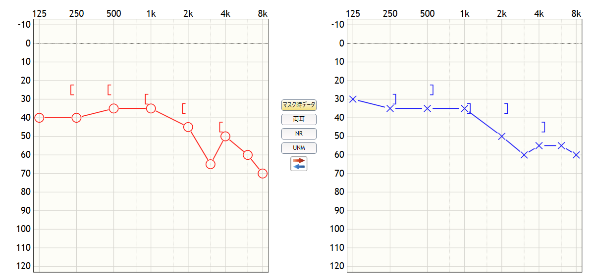 ・最高語音明瞭度:右80dB/75% 左80dB/90%