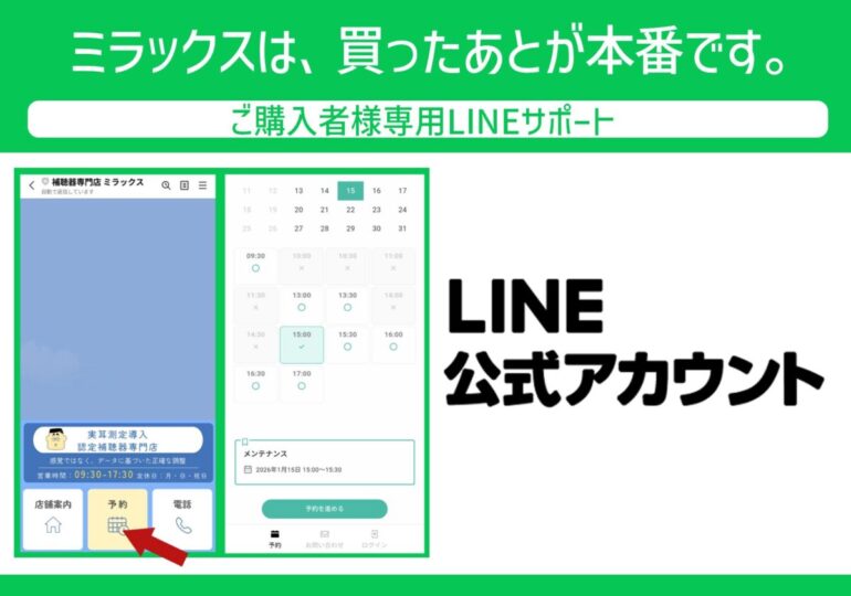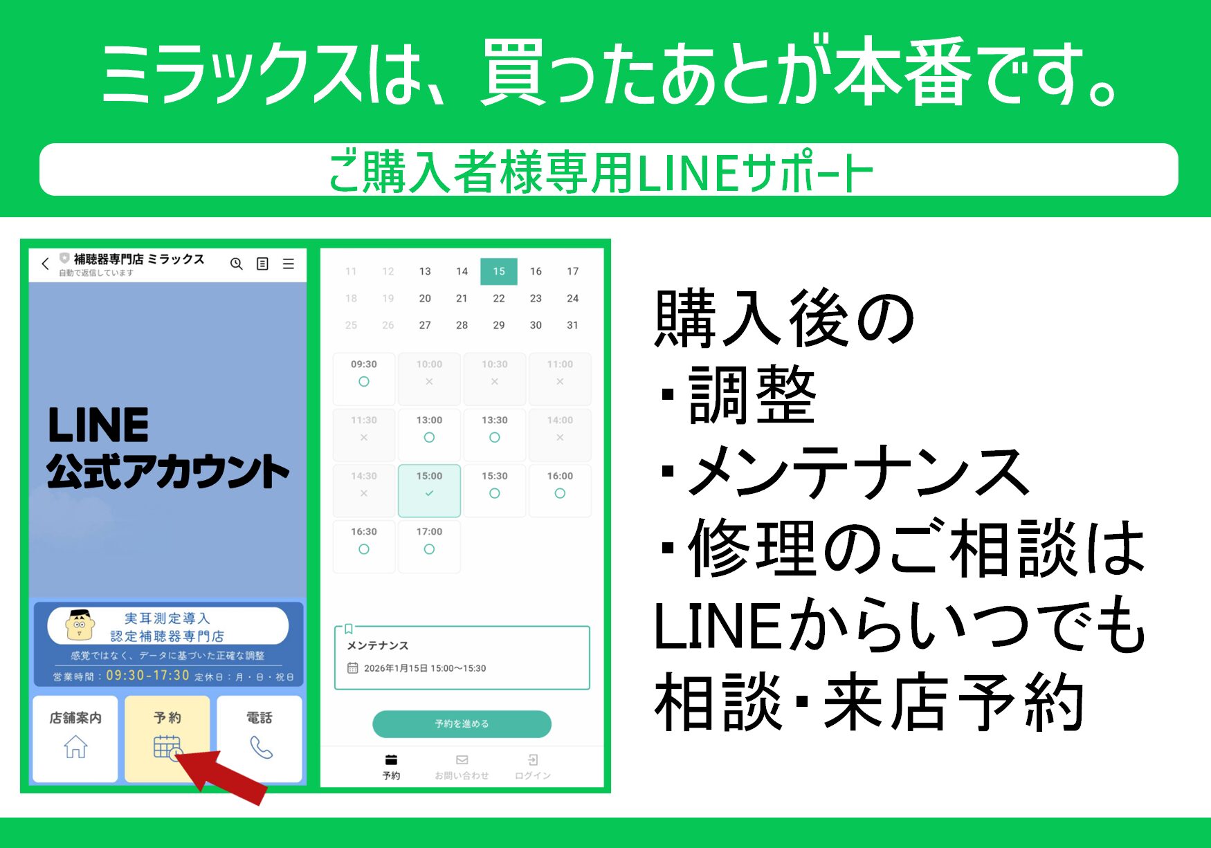 ミラックスで補聴器をご購入いただいたお客様は、専用LINEサポート窓口をご利用いただけます。